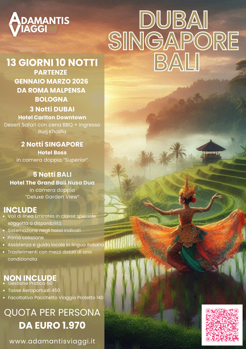 Dubai Singapore Bali - Gennaio Marzo 2026